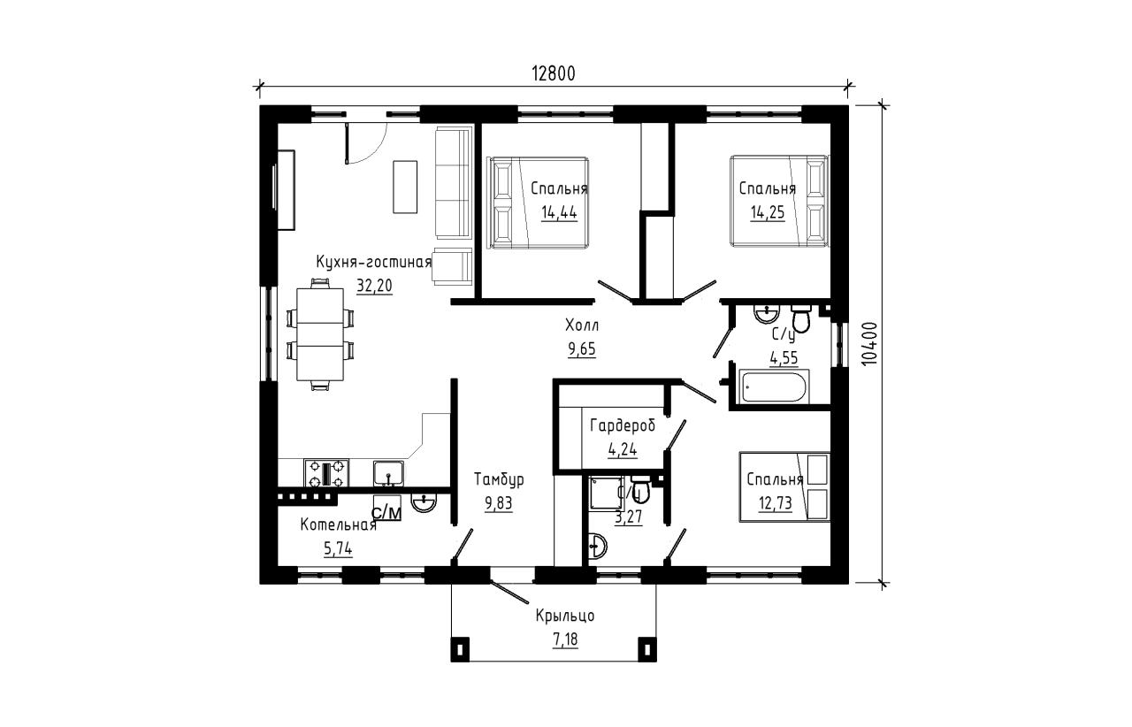 Проект одноэтажного коттеджа "Фенхель" из газобетона