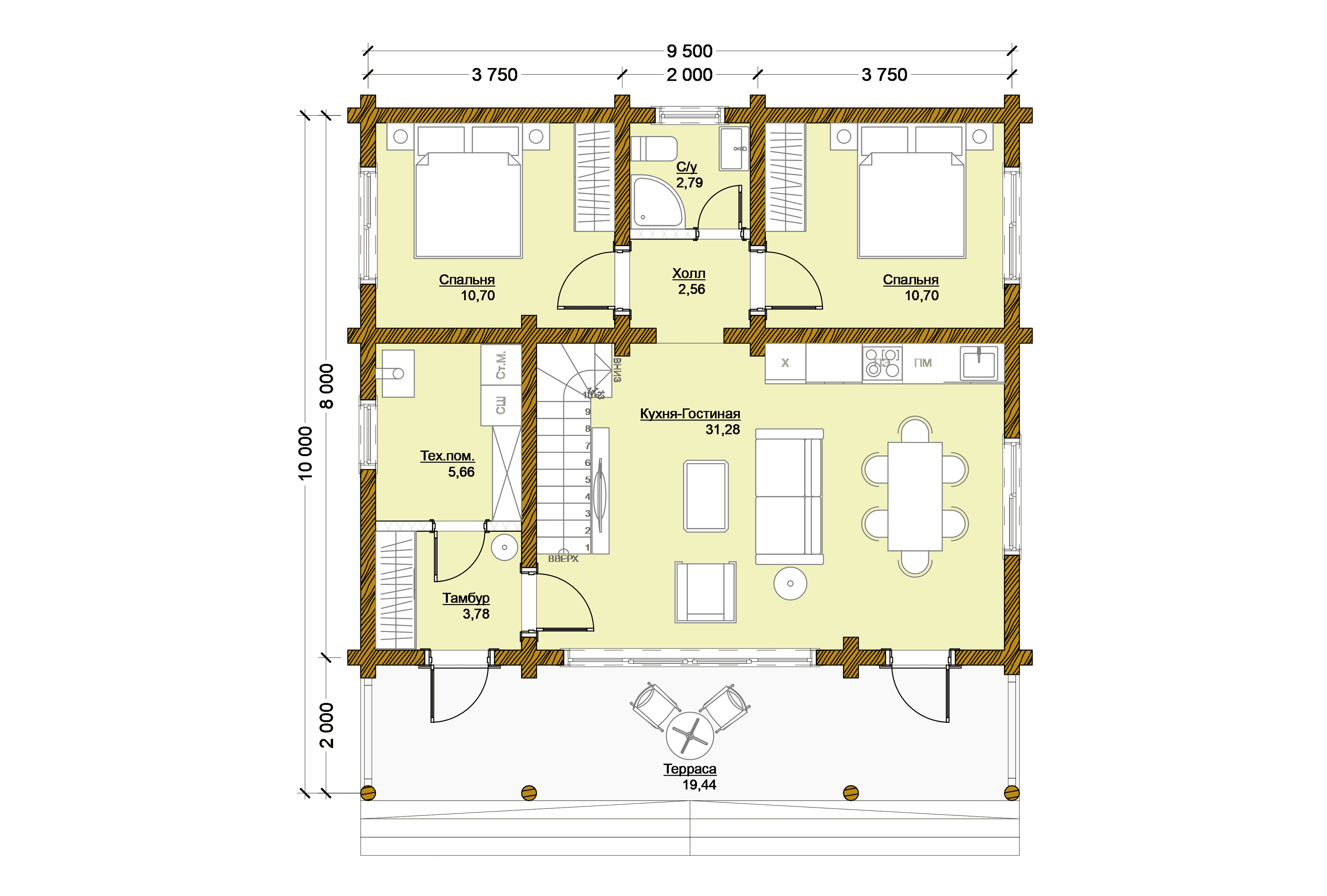 2 спальн. · 1 этаж