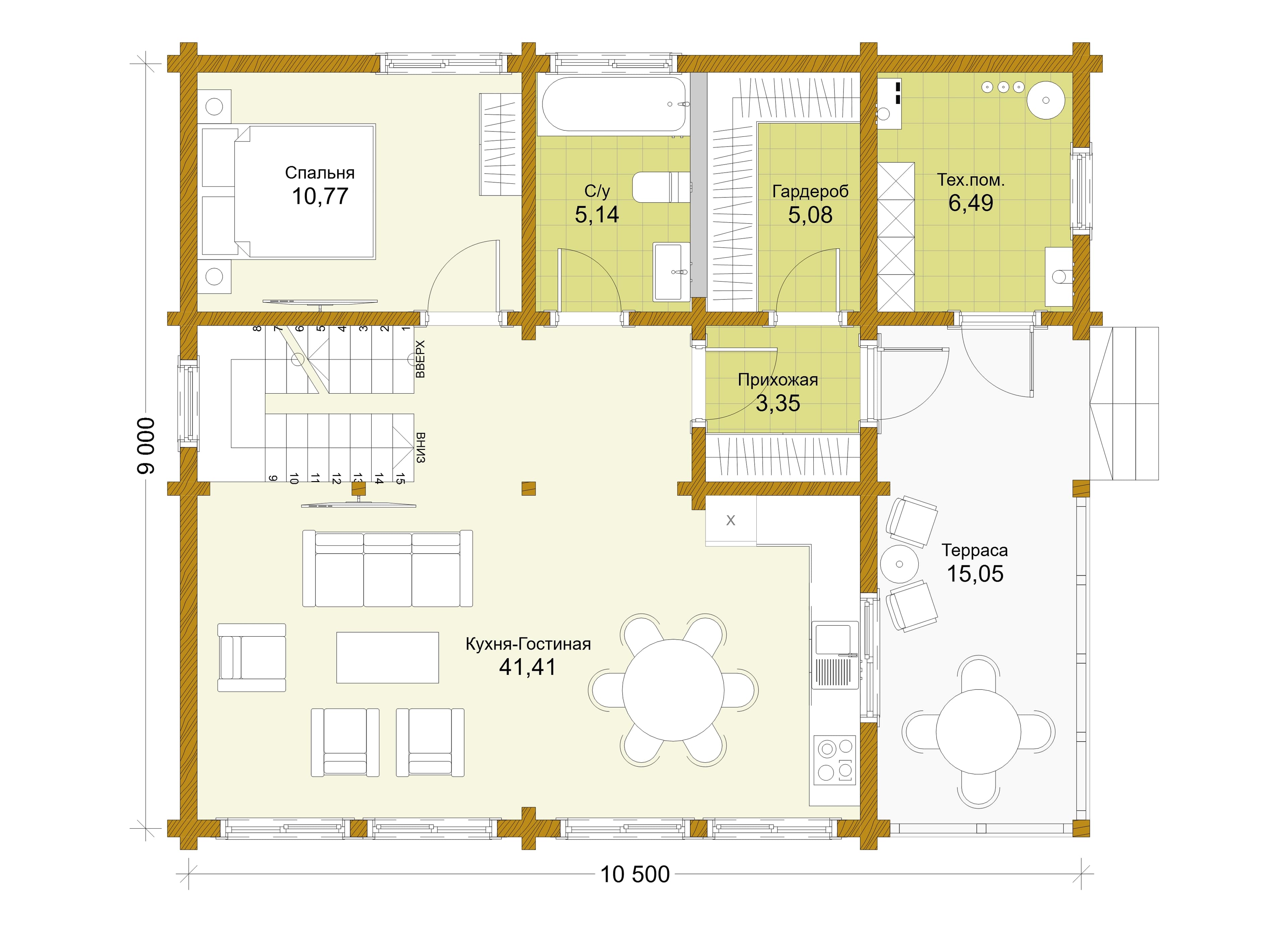 2 спальн. · 1 этаж