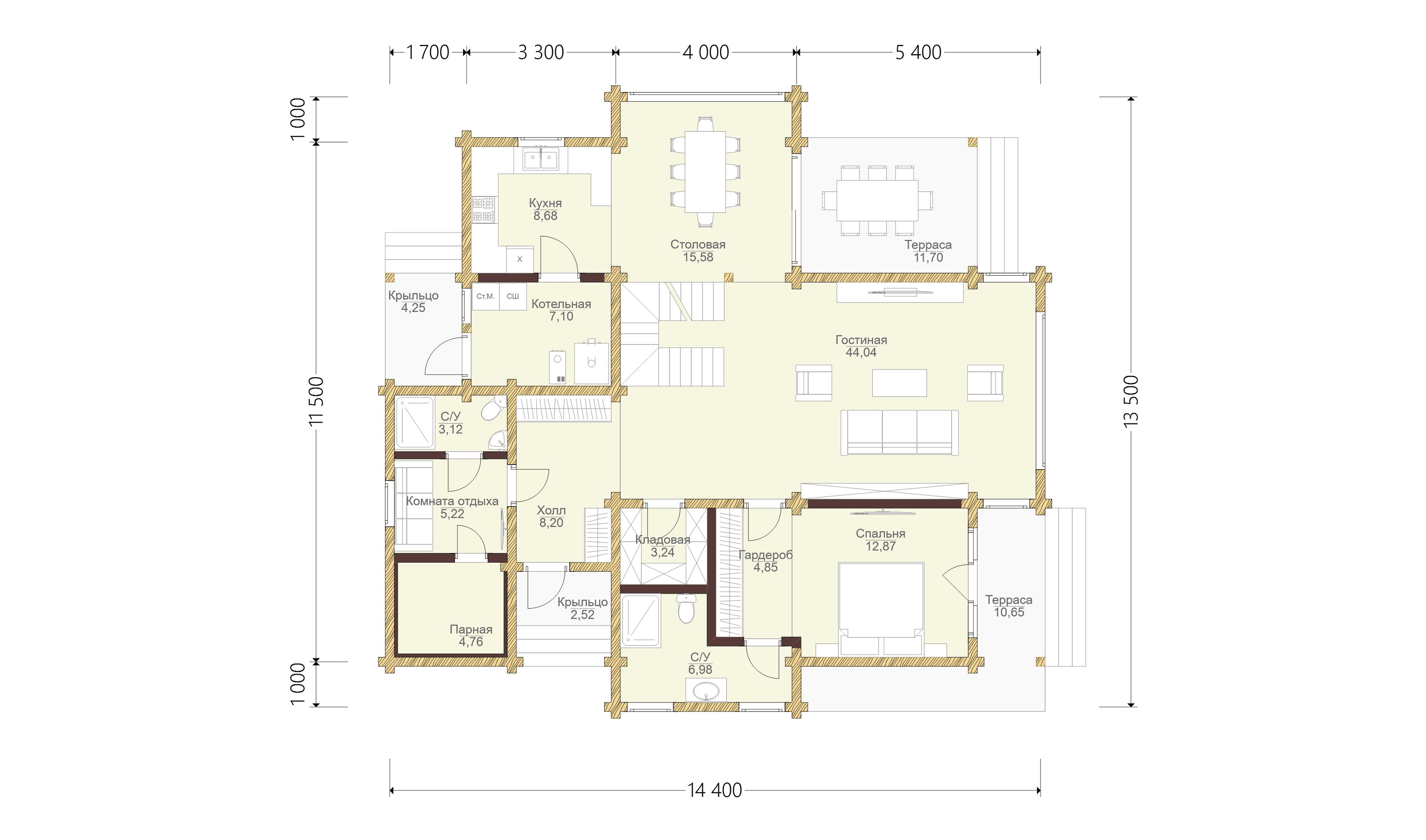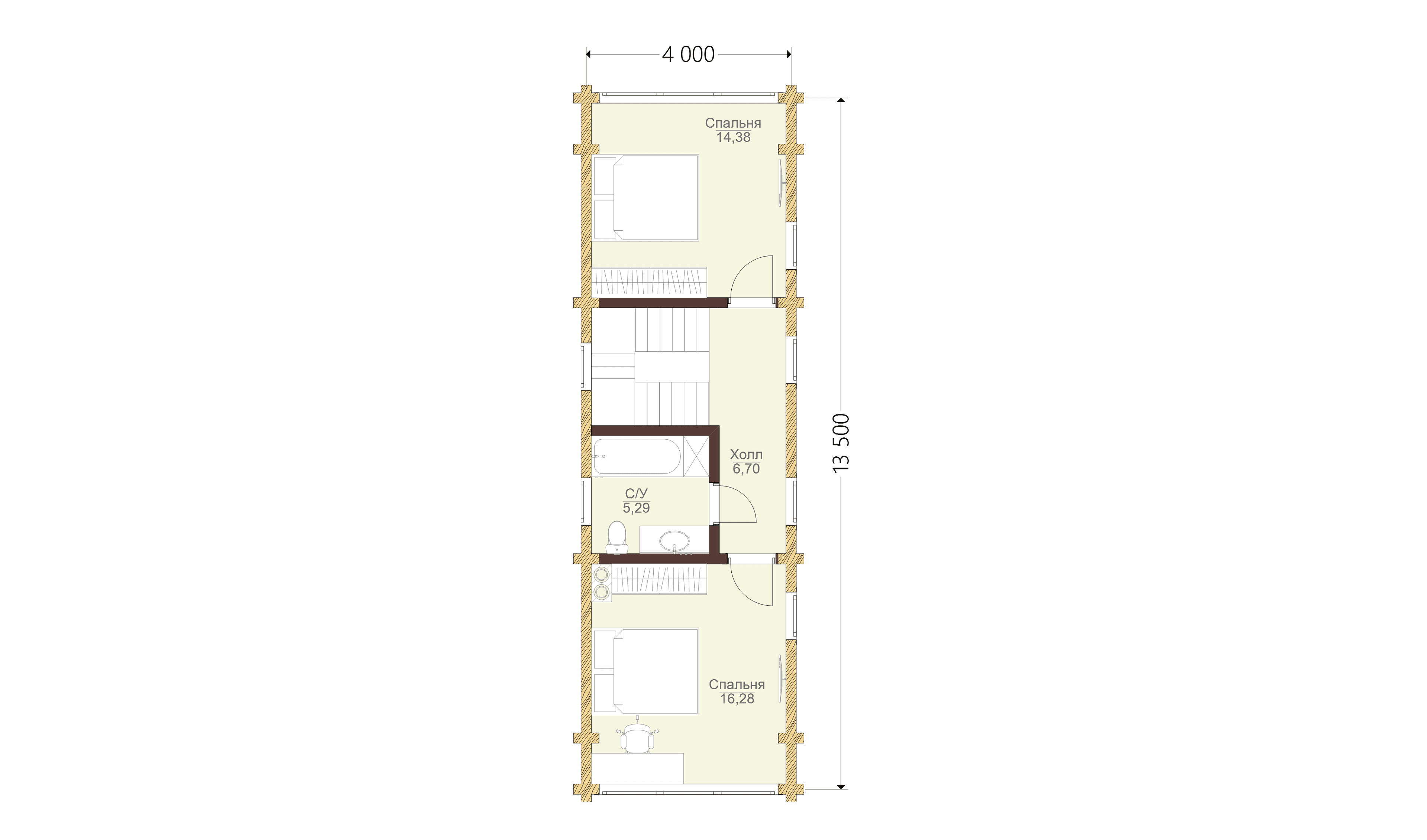 Проект двухэтажного дома "Уголок-М6" из бруса