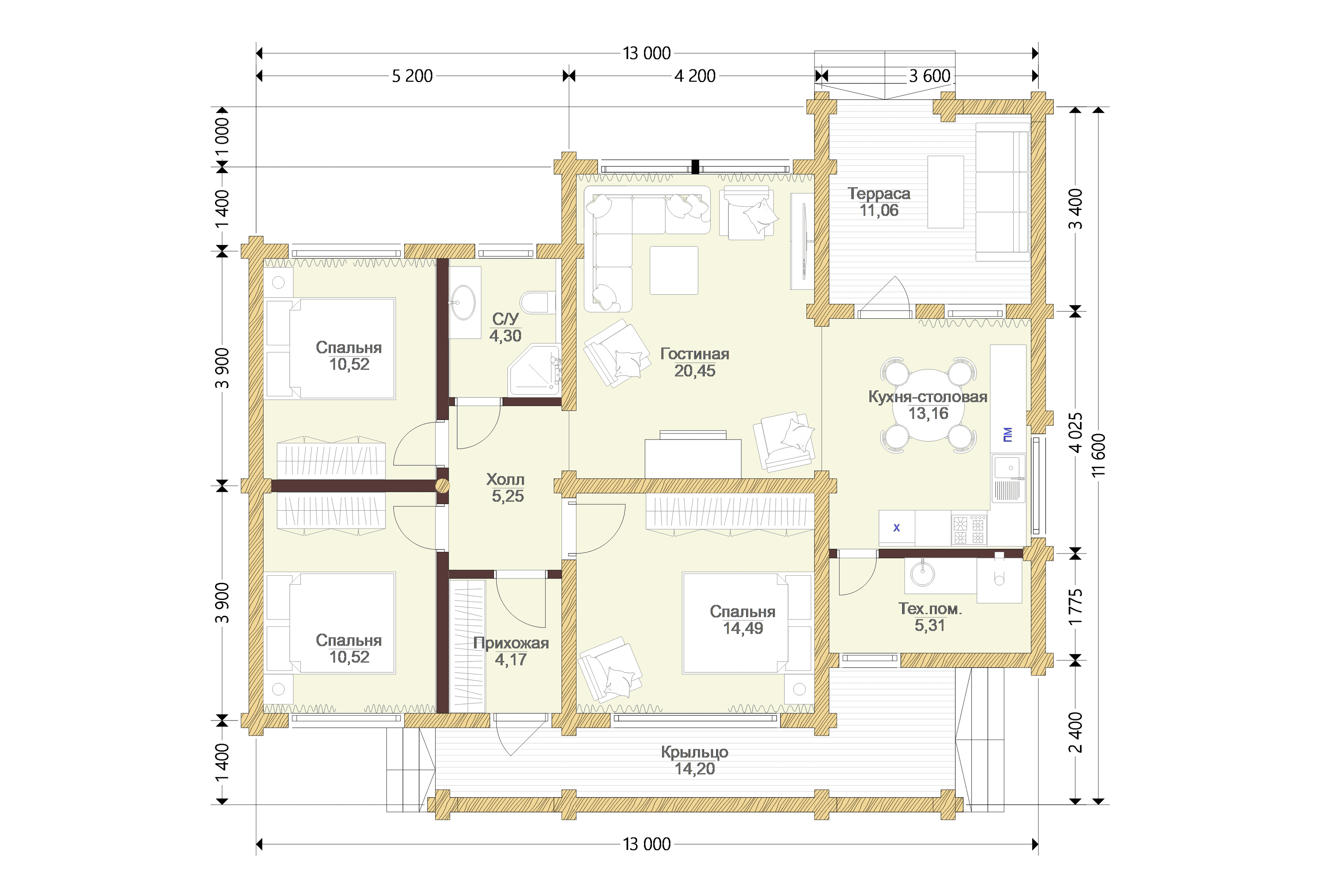 Дом из оцилиндрованного бревна «Муром» | ЭкоТех
