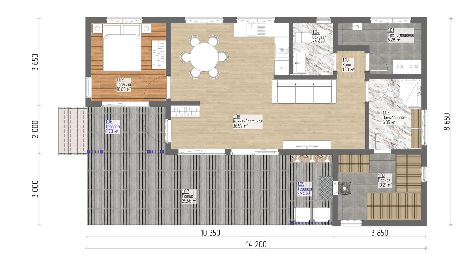 3 спальн. · 1 этаж