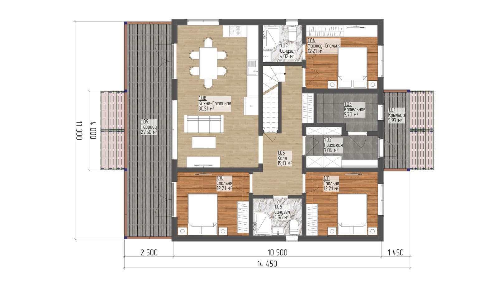 Проект дома из газоблоков 21х10 ГББ-164: цена 10250000 руб.