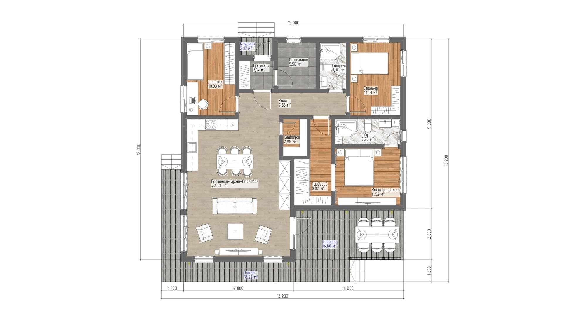Проект одноэтажного дома "Чиполлино" из бруса