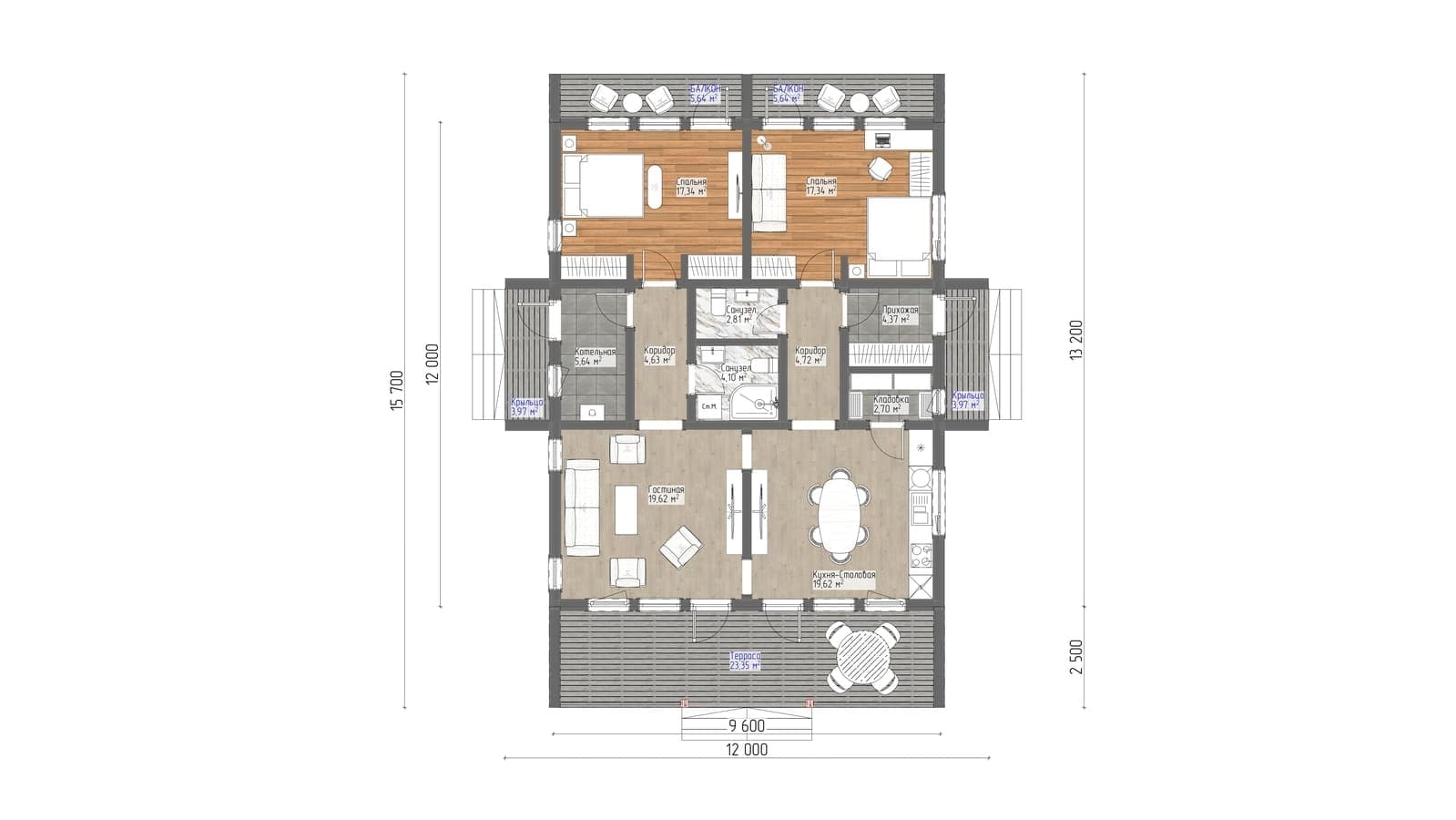 Проект одноэтажного дома с террасой Flat-02-158 м² — Домострой