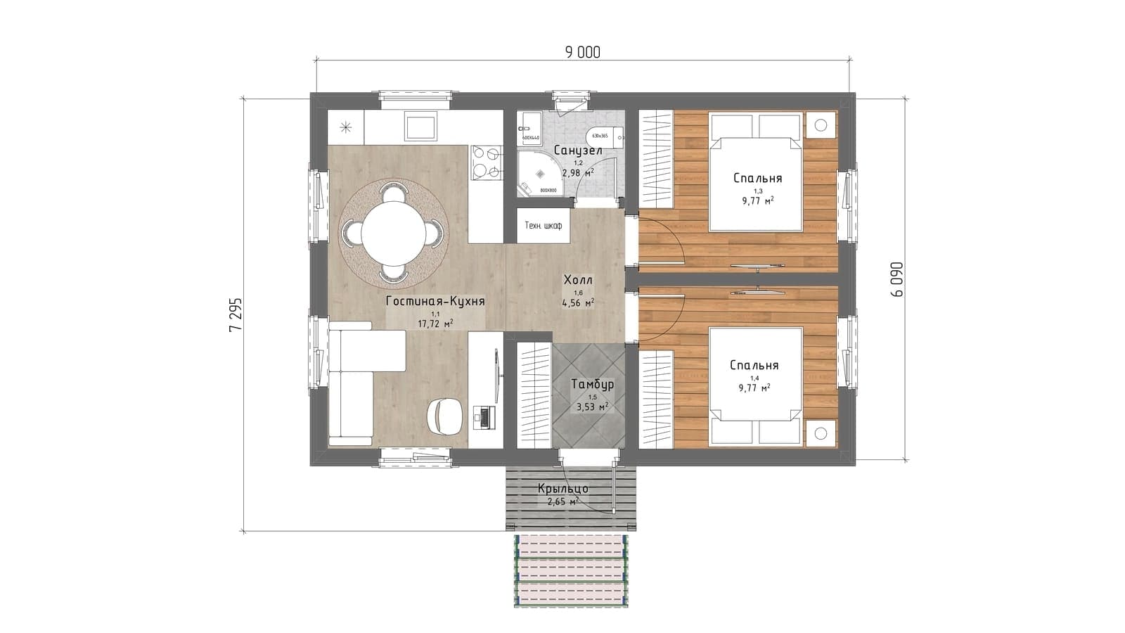 2 спальн. · 1 санузл. · 1 этаж