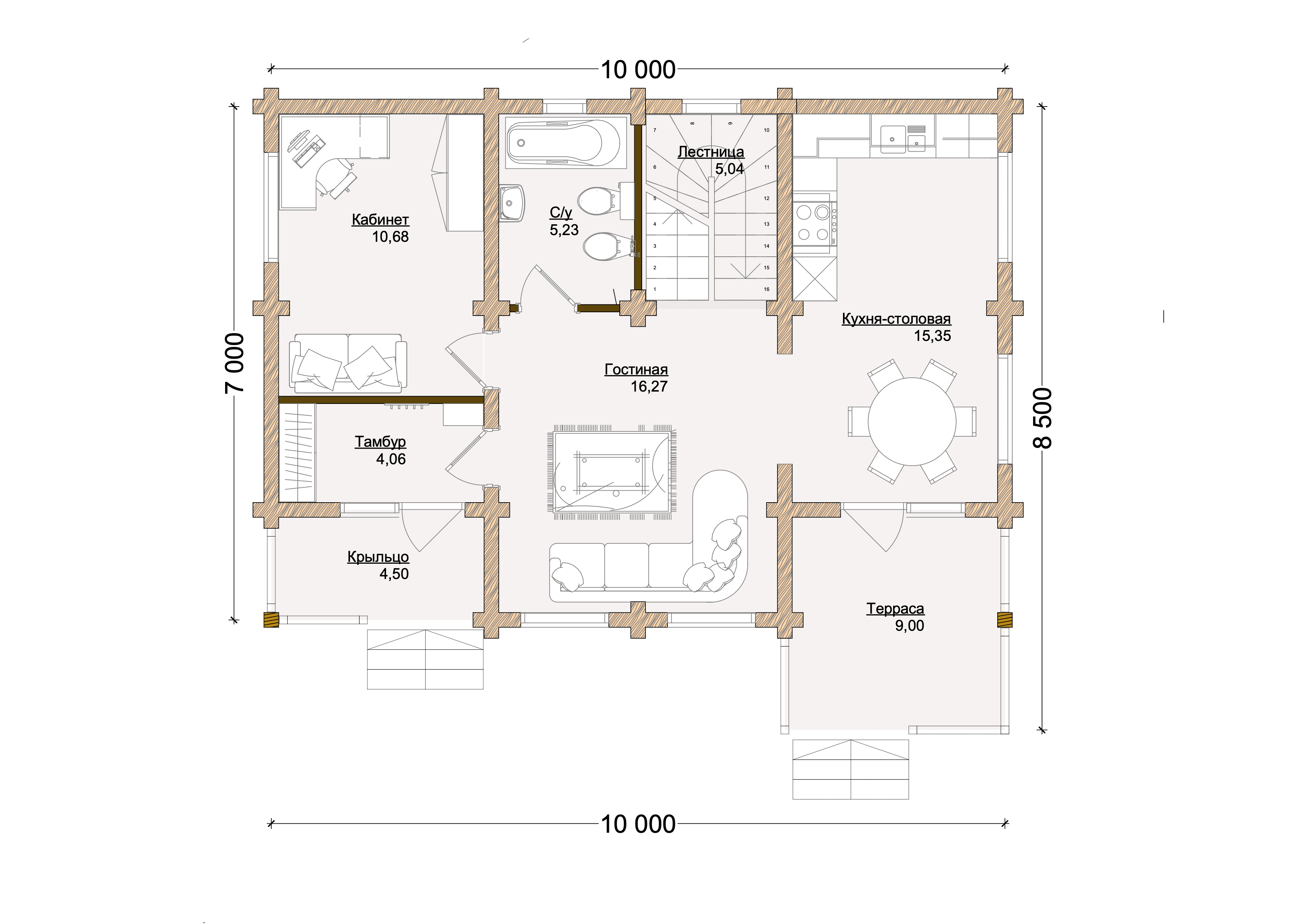 Проект одноэтажного дома "Синица" из бруса