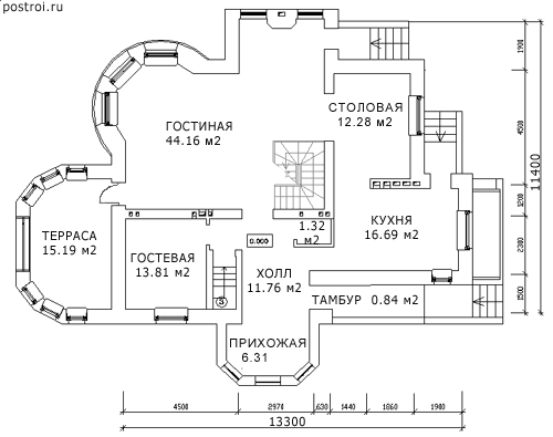 Проект одноэтажного коттеджа "Тефия КД" из газобетона