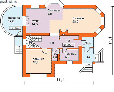 Проект одноэтажного коттеджа "Тульский пряник" из газобетона