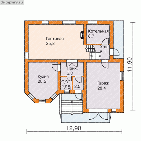 Проект одноэтажного дома с террасой Flat-02-158 м² — Домострой