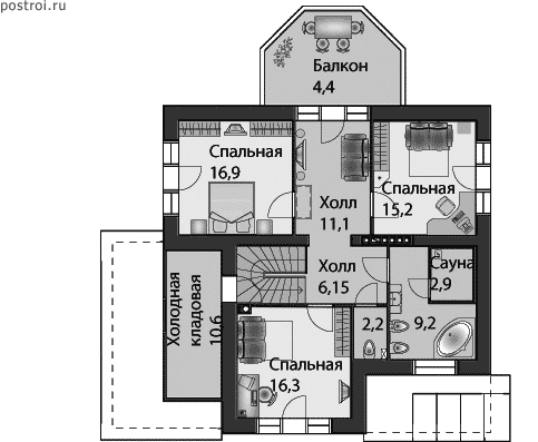 Проект одноэтажного коттеджа "Морозный бор" из газобетона