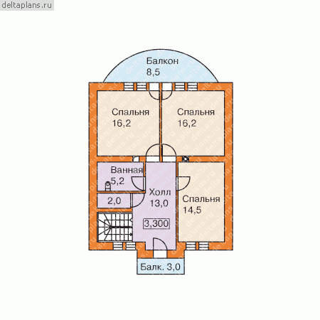 3 спальн. · 2 санузл. · 2 этаж