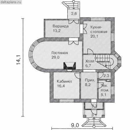 Проект одноэтажного коттеджа "Свирель" из газобетона