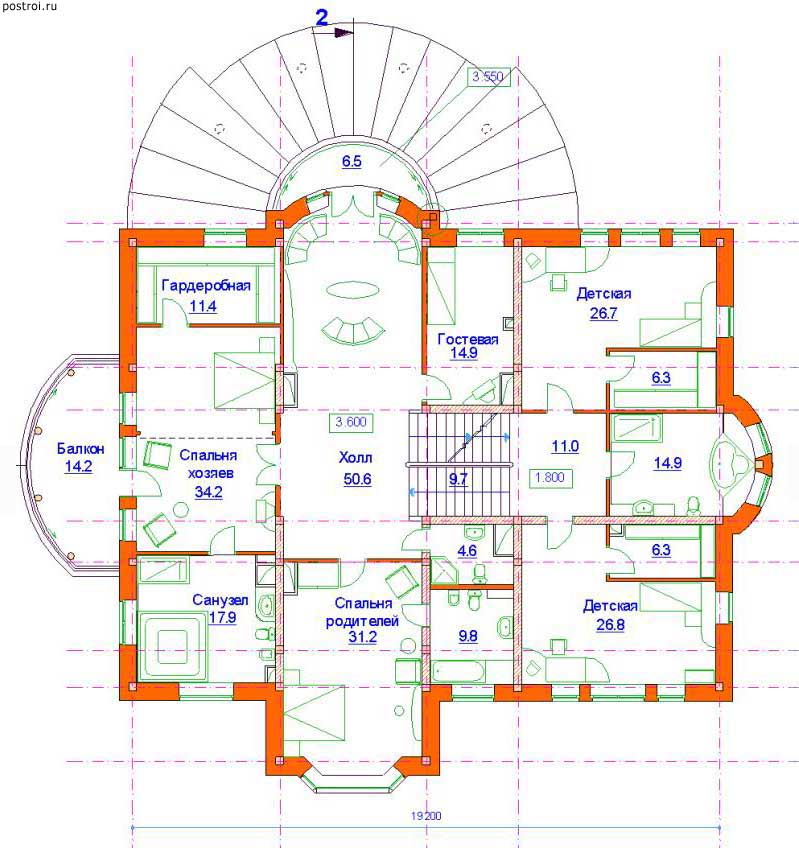4 спальн. · 8 санузл. · 2 этаж