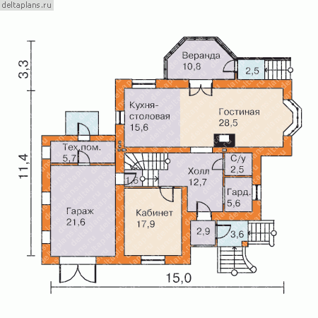 Проект двухэтажного дома "Уголок-М5" из бруса