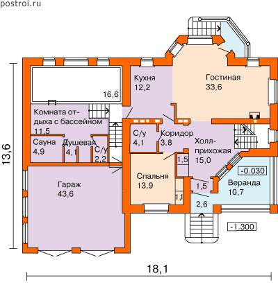 Дом из газобетонных блоков С-389 ГБ «Аура»