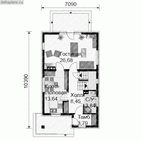 Проект одноэтажного дома "Красная Шапочка" из бруса