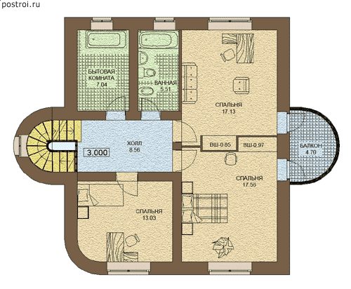 Проект дома 4 спальни 2 санузла №367
