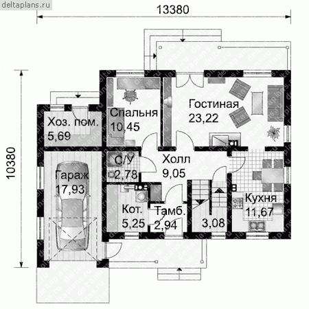 Проект одноэтажного коттеджа "Караван" из бруса