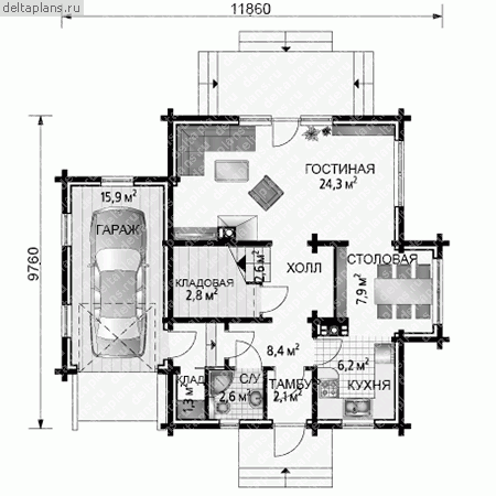 Проект двухэтажного дома "Уголок-М6" из бруса