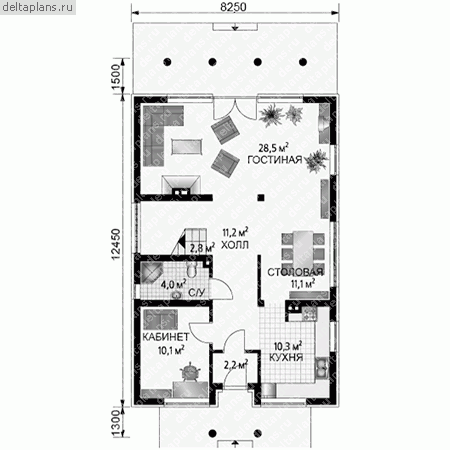 Проект одноэтажного коттеджа "Медовый" из газобетона