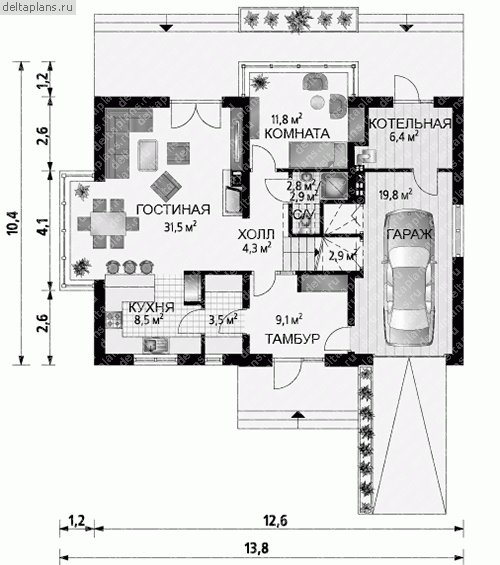 Дом из газобетонных блоков С-298 ГБ «Орион»