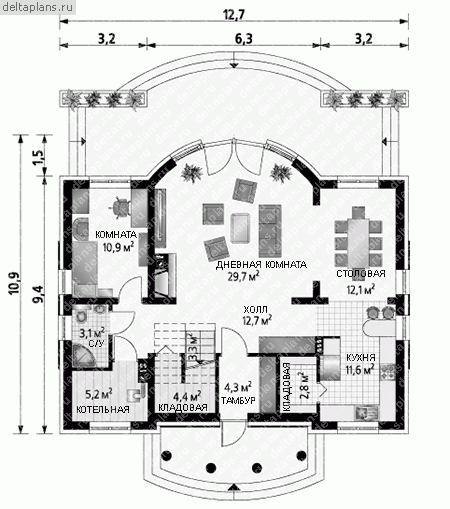 Проект одноэтажного каркасного дома "Лучезар"