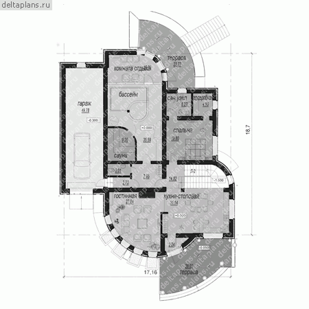 Проект одноэтажного дома "Брют" из бруса