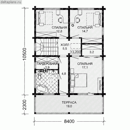 3 спальн. · 2 санузл. · 2 этаж