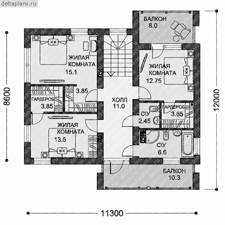 4 спальн. · 3 санузл. · 2 этаж