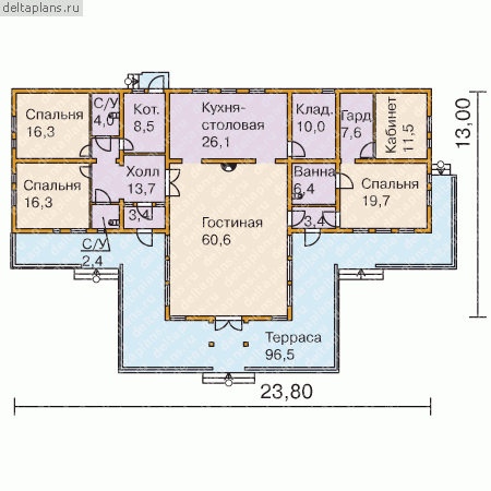 Проект одноэтажного коттеджа "Пава" из газобетона