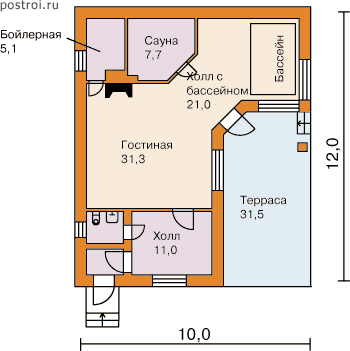 Проект одноэтажного дома "Антоновка" из бруса