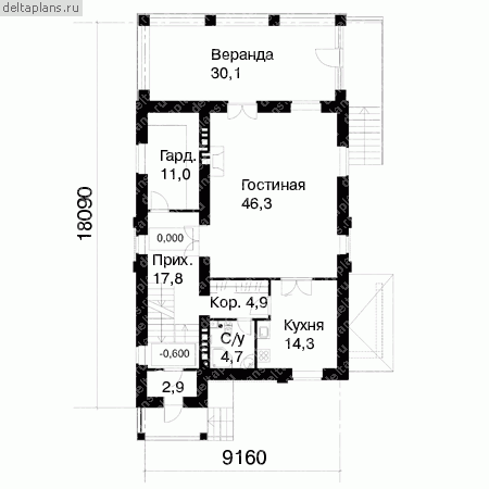 Проект одноэтажного дома "Фортуна 2" из бруса