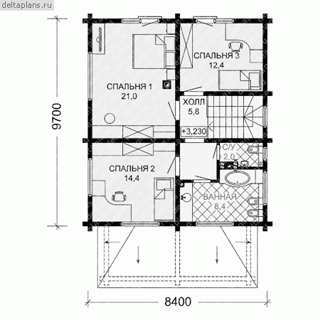 2 спальн. · 2 этаж