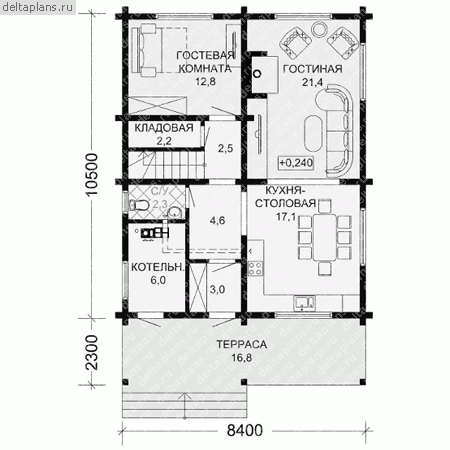 Проект одноэтажного дома "Норвежец с топочной" из бруса