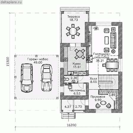 Проект одноэтажного коттеджа "Рамиата КД" из газобетона