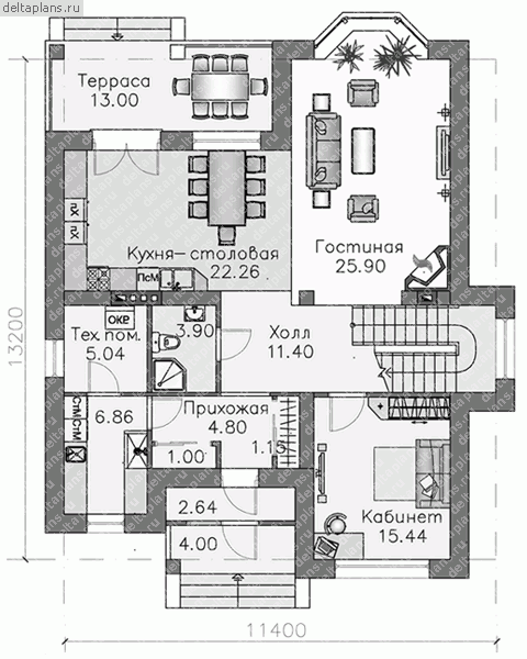 Проект одноэтажного коттеджа "Твистер" из газобетона
