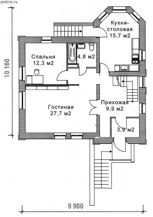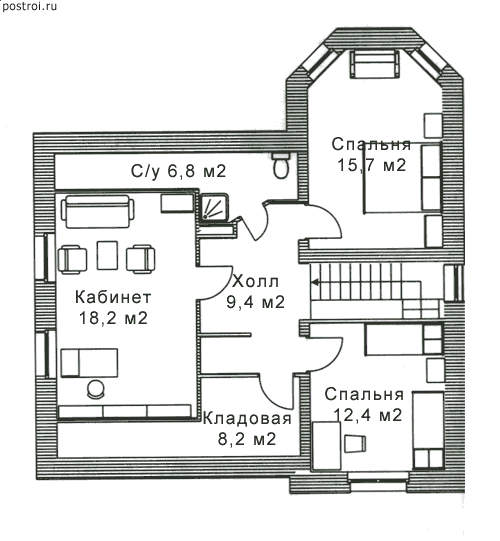 Проект двухэтажного дома "Уголок-М4" из бруса