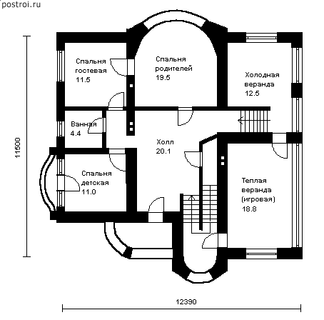 Проект двухэтажного коттеджа "Руслана" из газобетона
