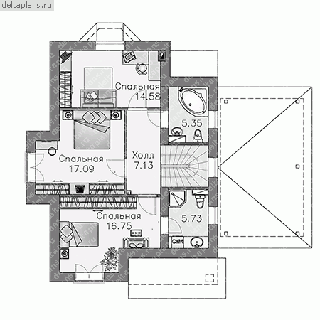 Проект одноэтажного дома "Чех-М2" (с топочной) из бруса