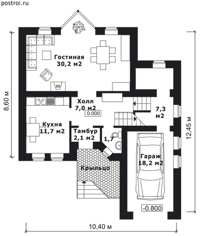 Проект одноэтажного коттеджа "Оттава" из газобетона