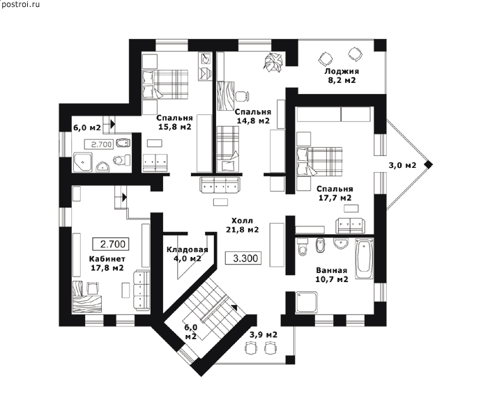 3 спальн. · 2 санузл.
