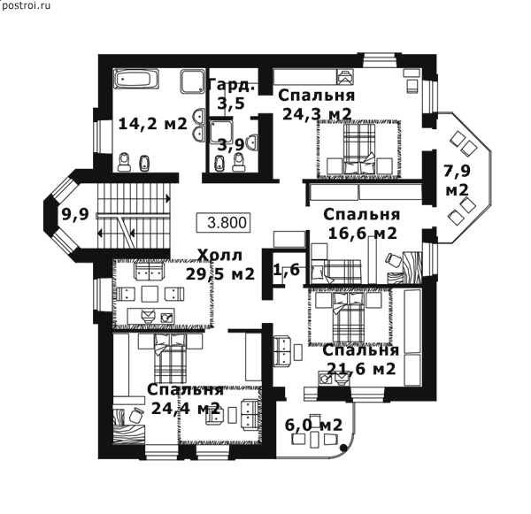 6 спальн. · 5 санузл. · 2 этаж