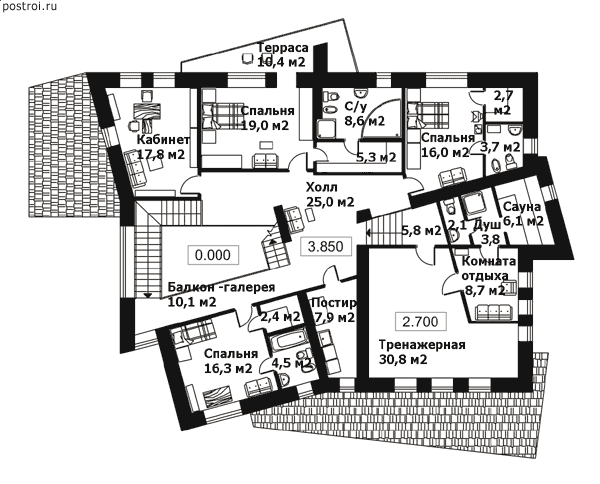 6 спальн. · 4 санузл. · 2 этаж