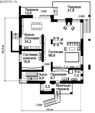 Проект двухэтажного коттеджа "Кристен" из газобетона