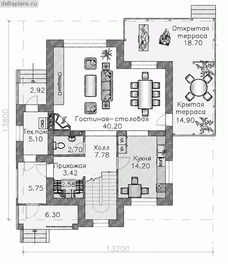 Проект одноэтажного каркасного дома "Тефия2"