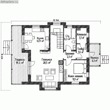 Проект одноэтажного дома "Батюшков-2" из бруса
