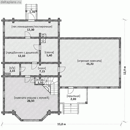 Проект двухэтажного каркасного дома Тетрис L под ключ от компании БАКО