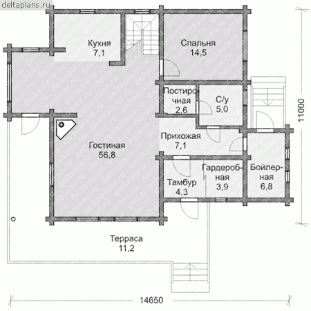 Проект одноэтажного коттеджа "Любава" из газобетона