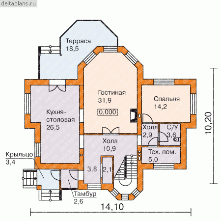 Проект одноэтажного коттеджа "Твистер" из газобетона